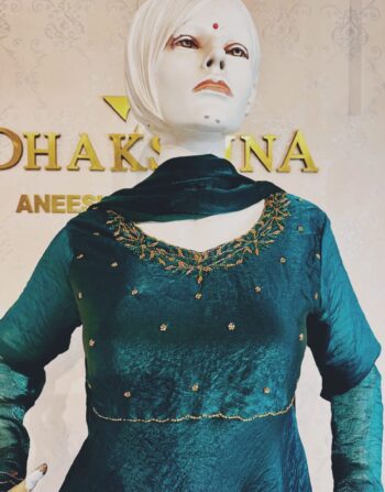 ₹1,800.00Original price was: ₹1,800.00.₹1,500.00Current price is: ₹1,500.00.- Elegant stitched Anarkali gown in rich teal