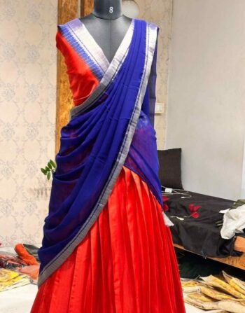 - Pallu: Contrasting deep red pallu for a sophisticated draped look.
